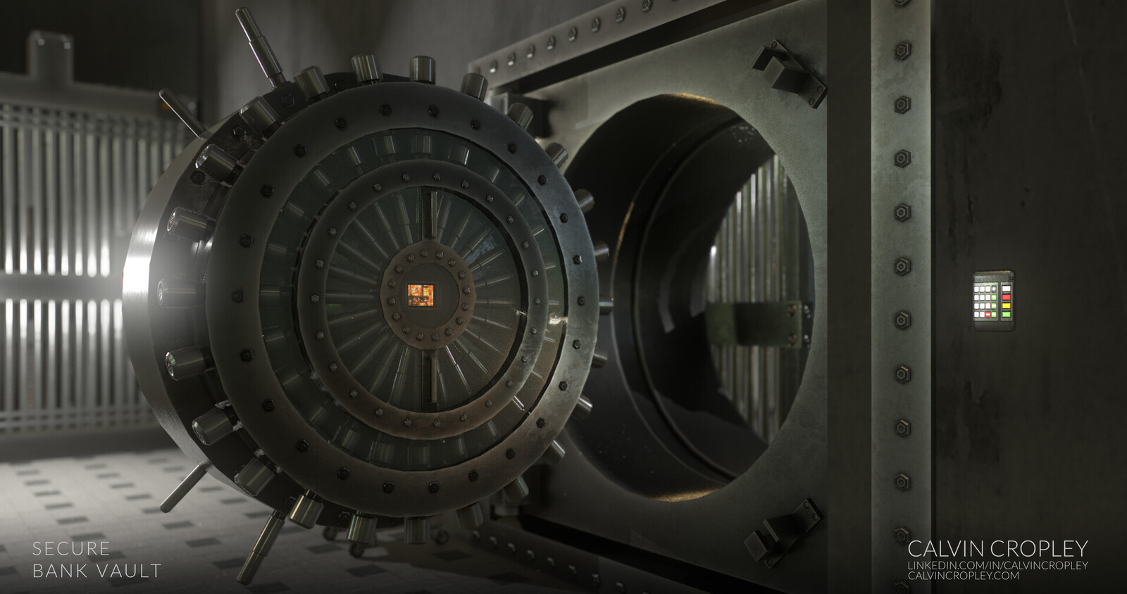 The movie Ocean's Eleven is my inspiration in creating this bank vault. I chose the biometrics, keypads, and tradition locks for high-level security. Since it is impossible to get access to a real bank vault, I just did research using images online, movie scenes, materials from the industrial area, and playing Half-Life and Gary's Mod to get a clear understanding with props from labs. For the materials, I use steel to give it a strong, cold feeling, and it added volume to the scene. In comes to lighting, I used emissive for most of the LED lights, computer, biometric hand scanner, gold cabinet, and overhead lab lights to light up the whole scene. The posters and blueprint are made entirely from the Maya Wireframe to add more details. I also use Source and masking to brush out specific areas that I wanted for texturing.